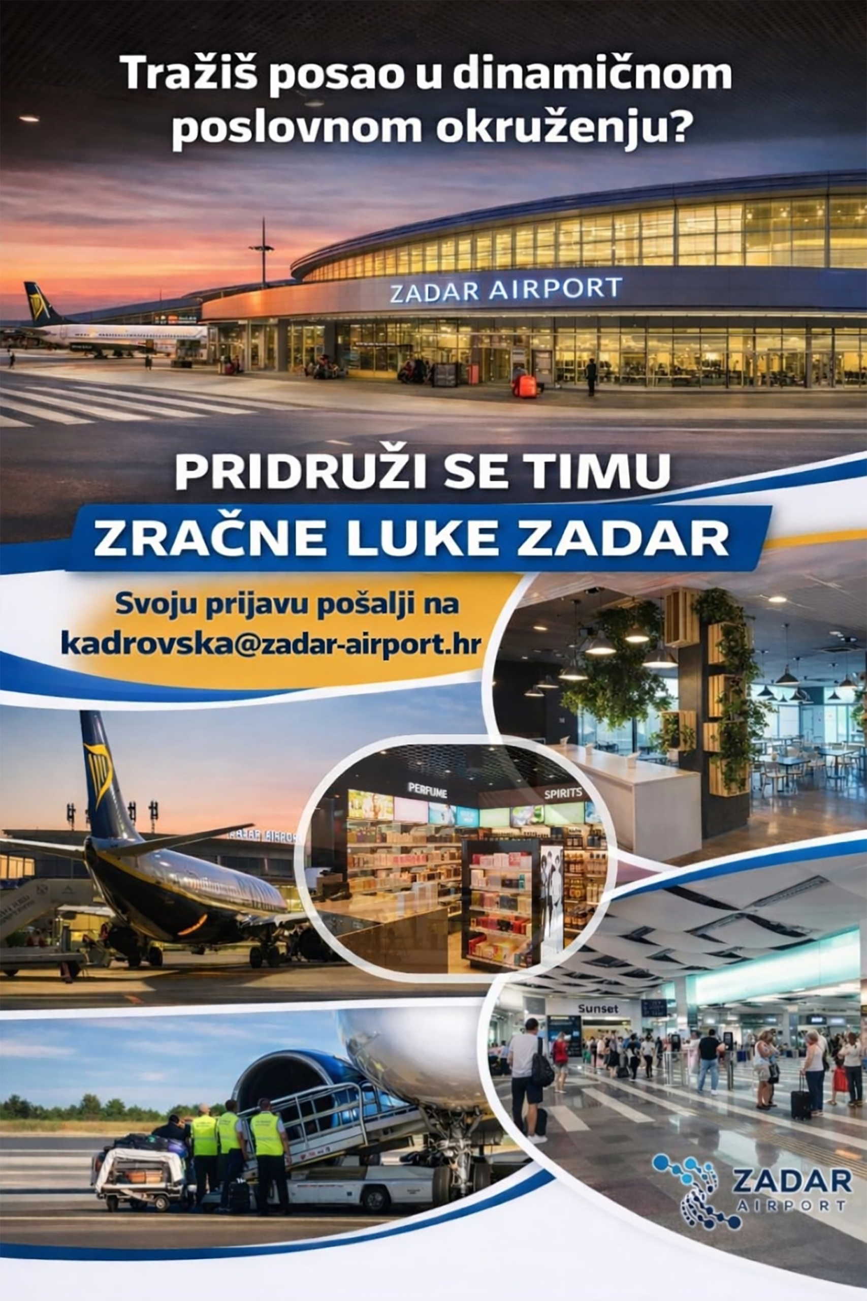 zapošljavanje Natječaj za zapošljavanje Zračna luka Zadar traži motivirane i odgovorne osobe koje žele postati dio našeg tima. Ako ste spremni raditi u dinamičnom Saznaj više »