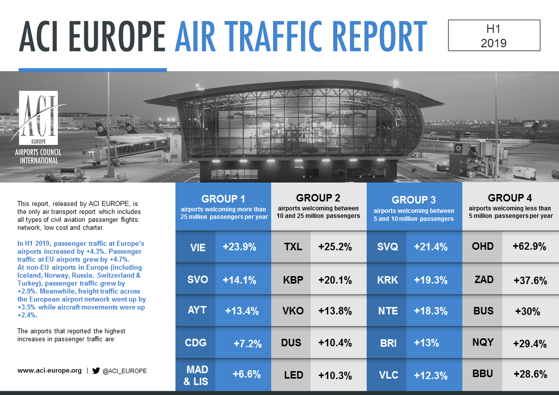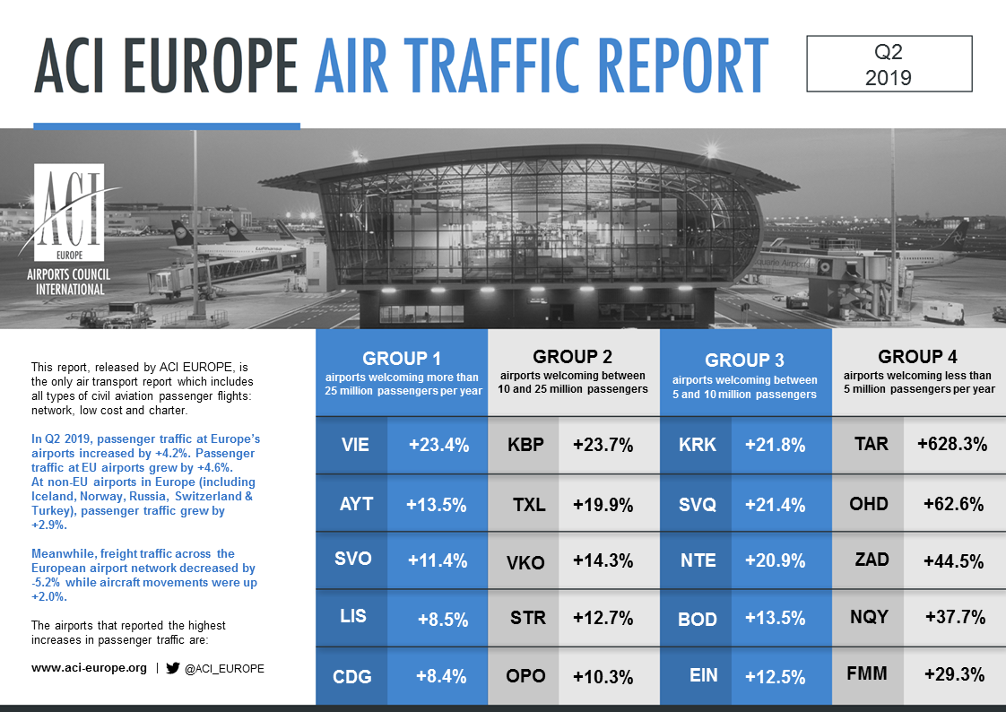 U Grupi 4 u razdoblju od početka godine do 30. lipnja 2019. Zračna luka Zadar bilježi drugi najveći rast u Europi, s izvrsnih 37.6 % rasta, u odnosu na isto razdoblje lani. Najveći rast u istom periodu bilježi Zračna luka Ohrid sa čak 62.9 %.