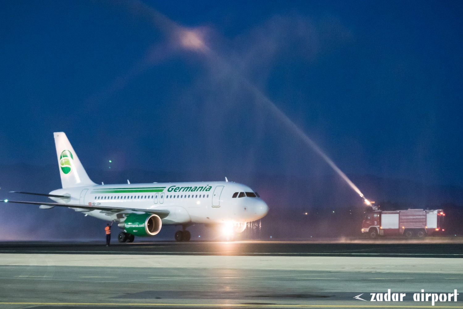 Nezavisna zrakoplovna kompanija Germania uspostavila je ove subote, 12.05.2018., novu liniju prema Zračnoj luci Zadar i povezala ovaj dio Hrvatske sa Zurichom. Zrakoplov Airbus A319 svečano je dočekan tradicionalnim “krštenjem” vodenim topovima vatrogasne postrojbe.