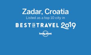 Jedan od najpopularnijih svjetskih turističkih vodiča Lonely Planet objavio je prestižni vodič „Best in Travel 2019“, koji sadrži preporuke o destinacijama koje valja posjetiti u 2019. godini. U odabranom i elitnom društvu našao se i Zadar, koji je zaradio prestižnu preporuku u kategoriji gradova. Riječ je o najvećoj svjetskoj godišnjoj kampanji Lonely Planeta u sklopu koje se, osim gradova, preporučuju zemlje i regije, ali i putovanja s najboljom vrijednošću za novac.