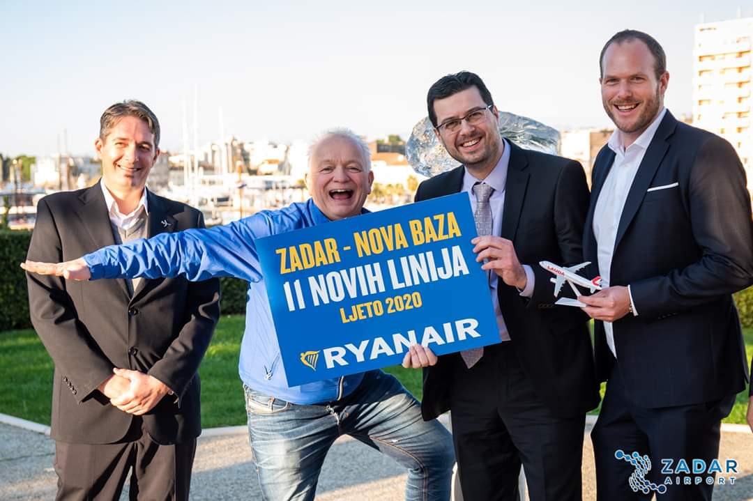 Ryanair, najveći europski zrakoplovni prijevoznik, danas (11. prosinca) najavio je otvaranje baze u Zadru za sezonu 2020. godine. U sklopu ljetnog reda letenja 2020. godine ukupno je 31 linija, uključujući i 11 novih linija prema uzbudljivim odredištima kao što su Aarhus, Cork i Riga. Red letenja počinje već u travnju 2020., a procjenjuje se da će prevesti ukupno 672.000 putnika godišnje, te poduprijeti otvaranje oko 500 radnih mjesta u raznim djelatnostima i uslugama koje se pružaju na Zračnoj luci Zadar. Ryanair također otvara i svoju bazu s 3 zrakoplova Laudamotiona u Zadru, što predstavlja investiciju od oko 300 milijuna dolara te direktno otvaranje 90 novih radnih mjesta u Ryanairu.