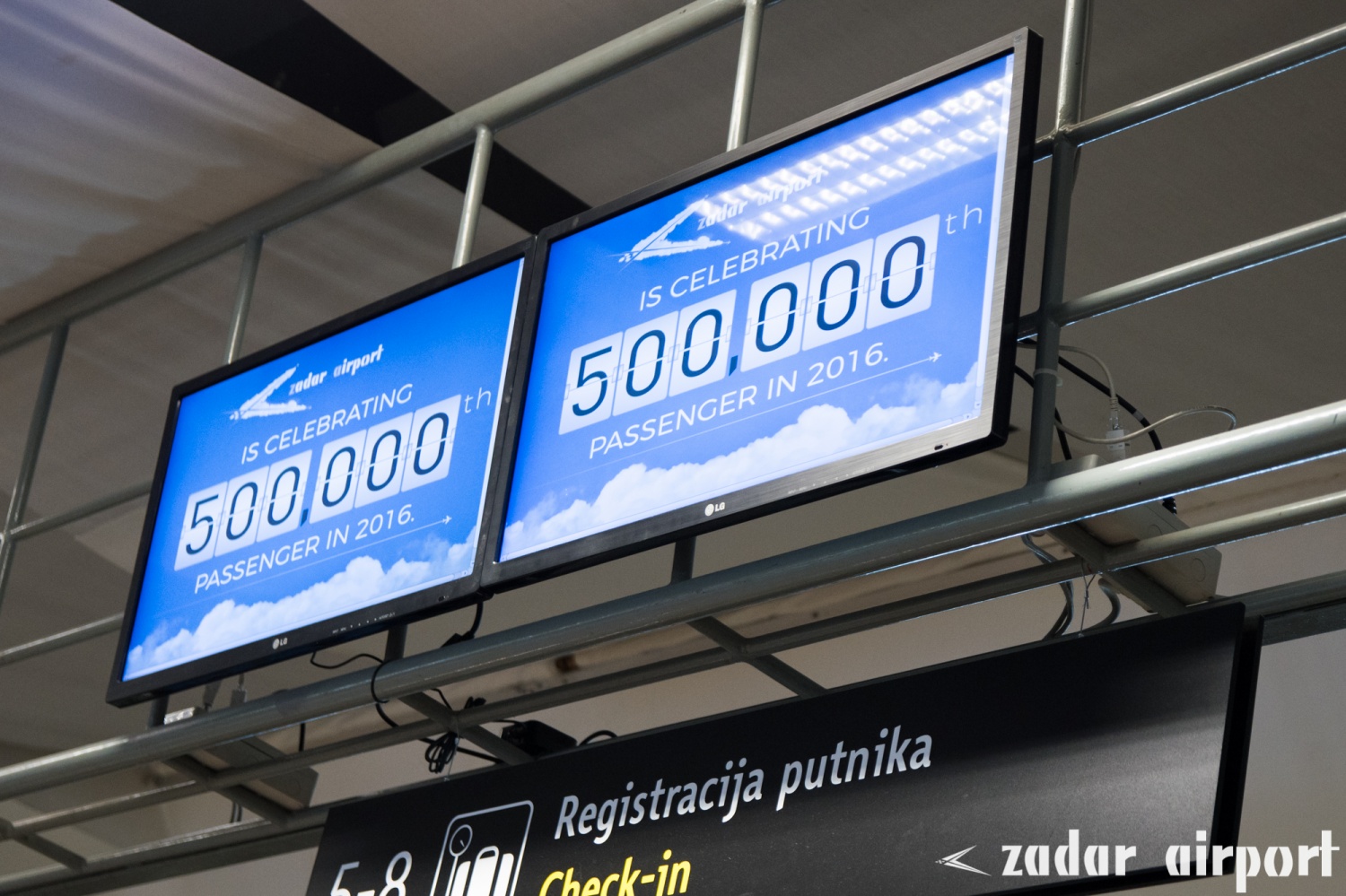 Danas je u Zračnoj luci Zadar dočekan petsto tisućiti putnik, do sada najveći ostvareni broj putnika u povijesti Zračne luke Zadar. Sretni putnik je gospođica Jelena Rukavina, na letu FR7313 za Dublin.