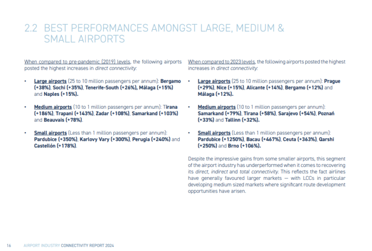 Objavio je to ACI Europe, organizacija europskih zračnih luka, u svom Izvješću o povezanosti aerodrome Europe.